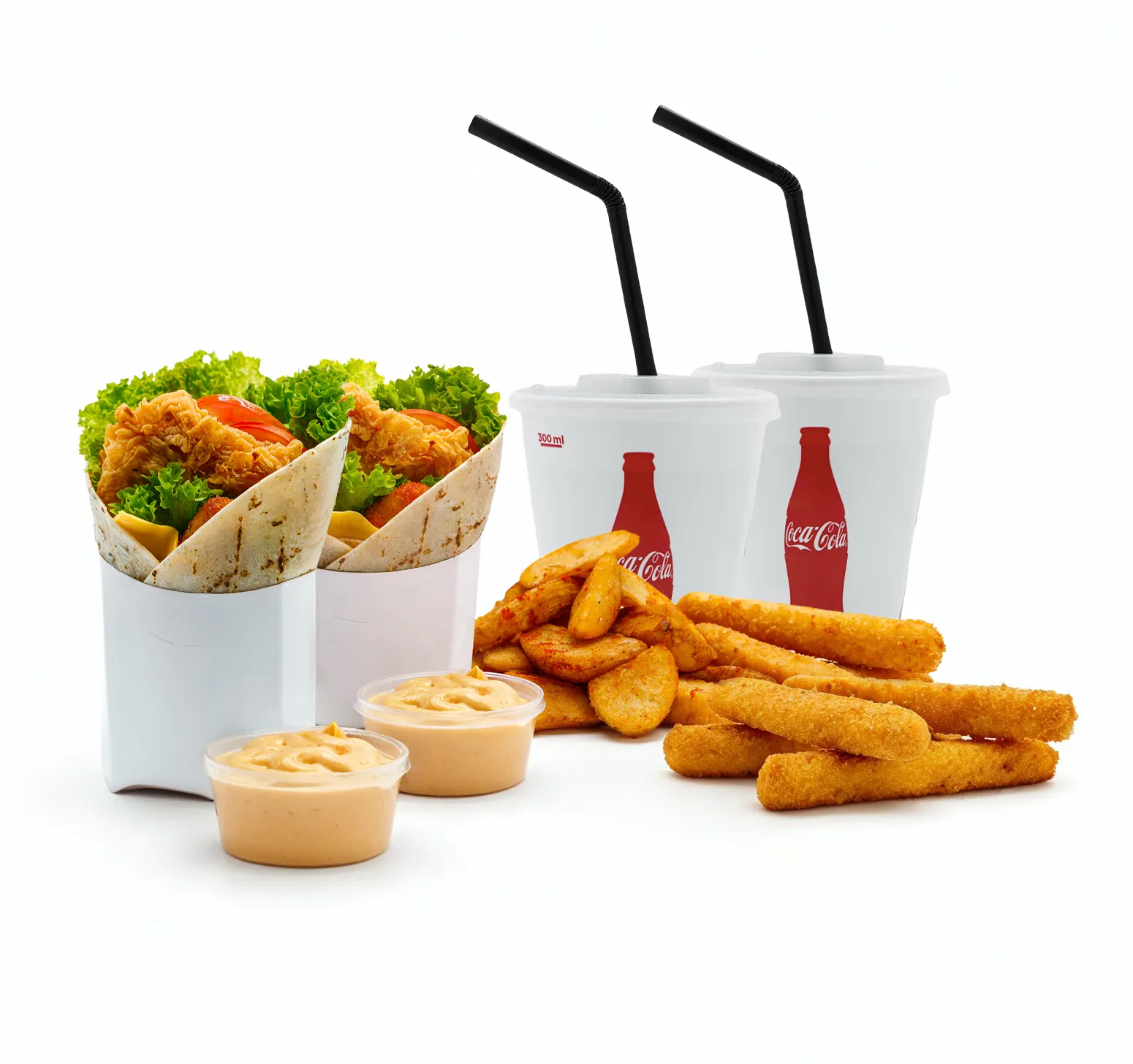 box master 2pieces,small village potatoes 2pieces,cheese sticks 2pieces,cheese sauce 2pieces,Coca-Cola 0.33ml 2pieces