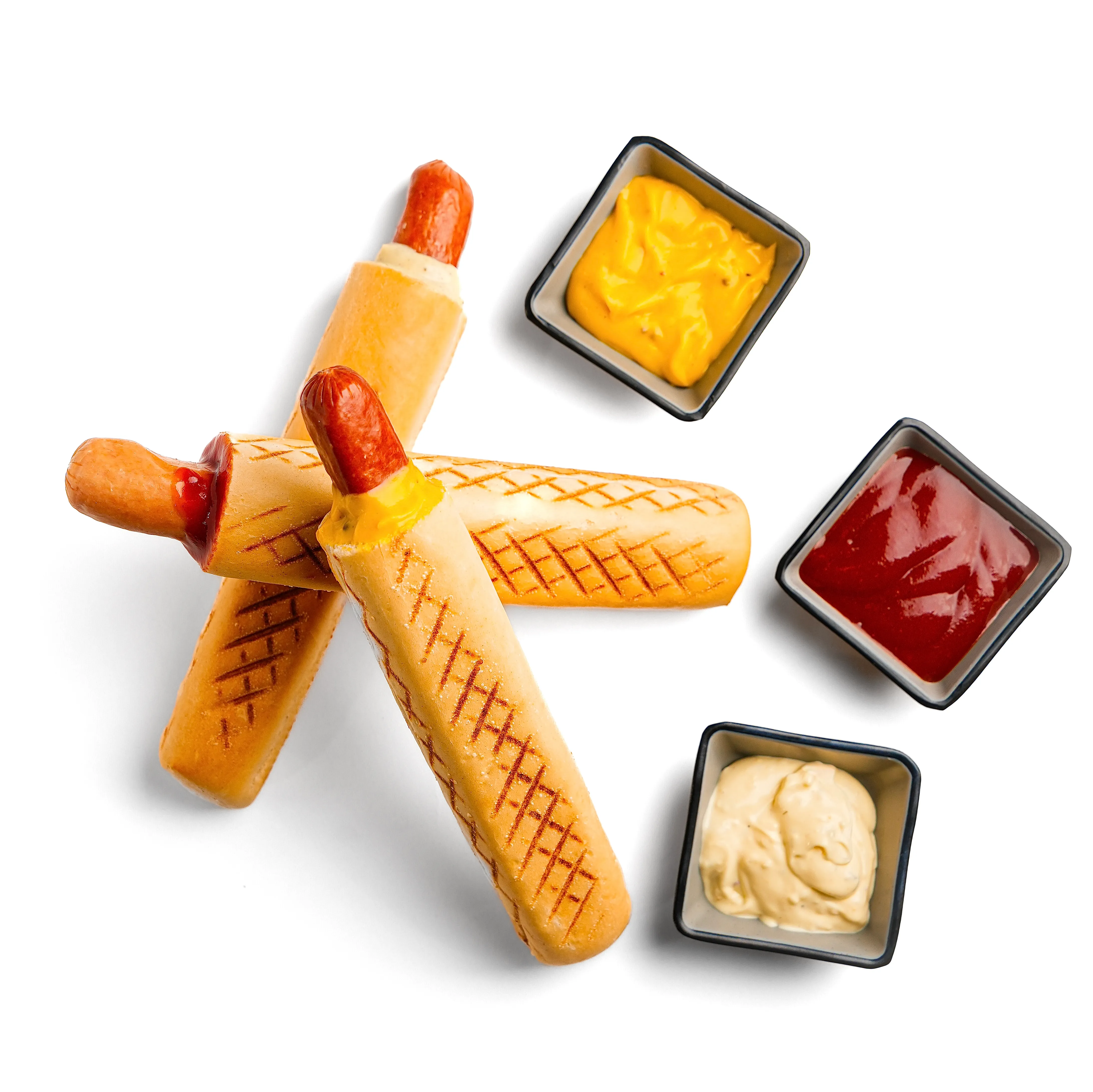Bavarian French Dog(pork),Thuringian French Dog(chicken),Bratwurst French Dog(beef)